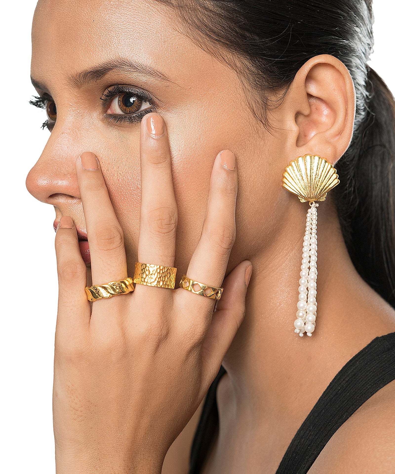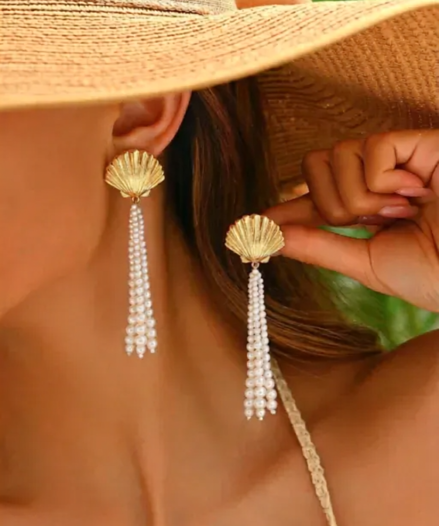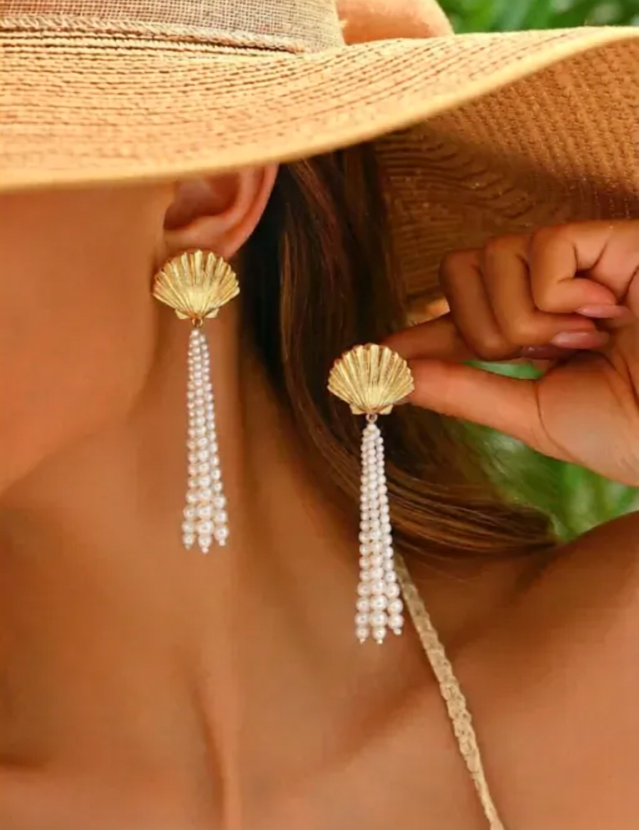 Shell Danglers with Pearl Strings