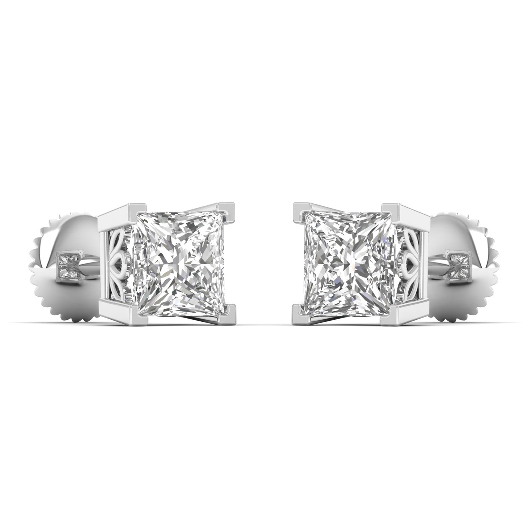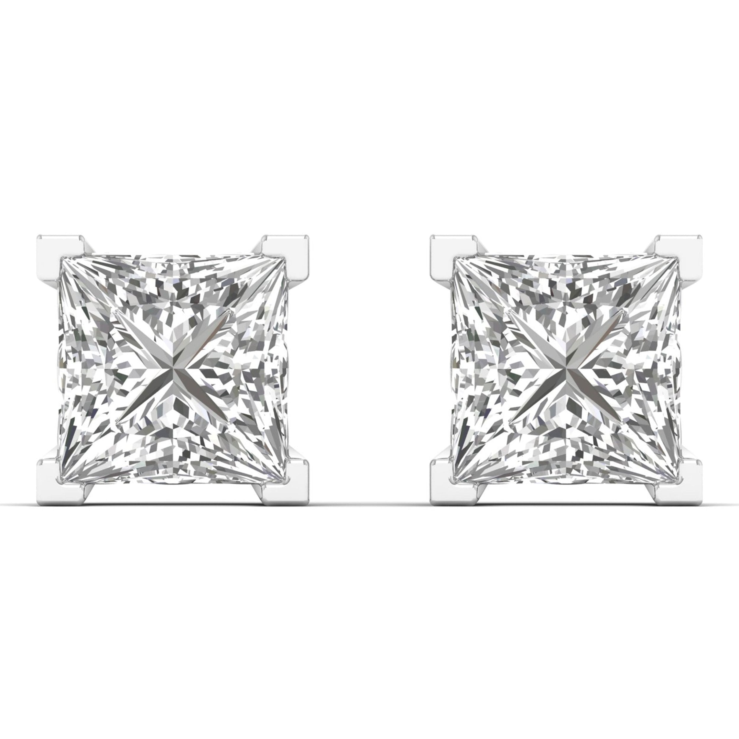 2 Carat Princess Cut Solitaire Studs