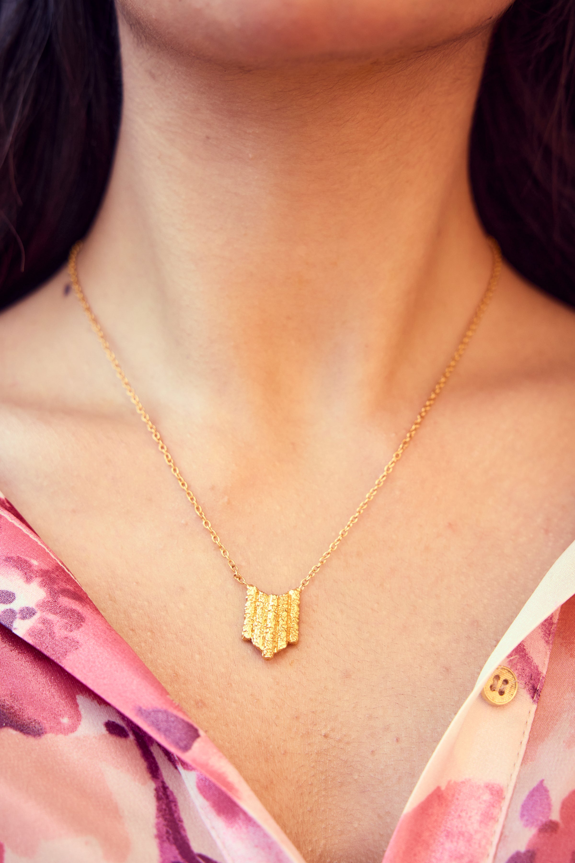 This Aisha necklace, part of our coral collection, is the perfect blend of minimalistic style and inspiration from the sea. Add a playful touch to your look with the matching Aisha earrings and cuffs.