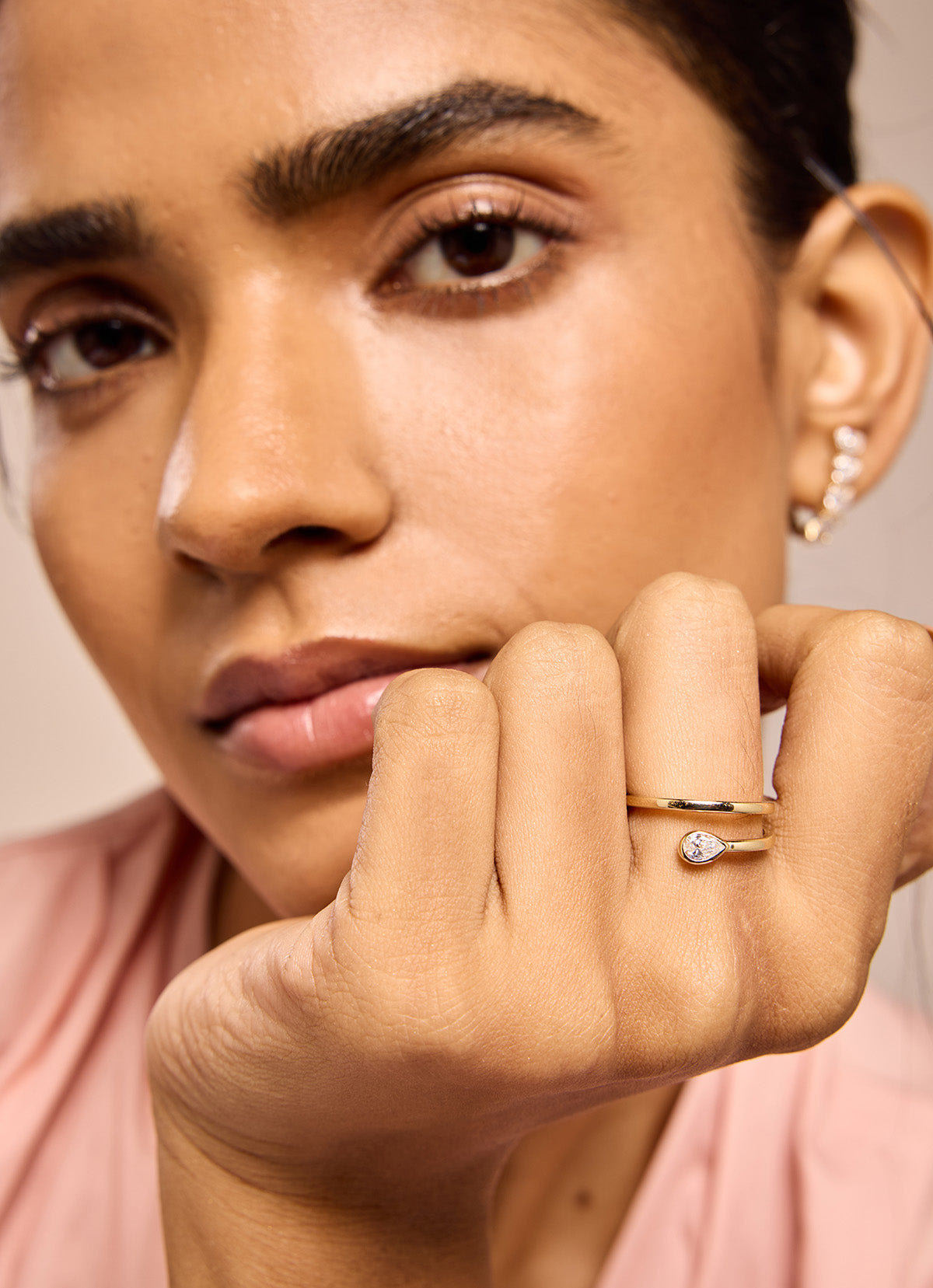 Single-Pear Double Loop Ring